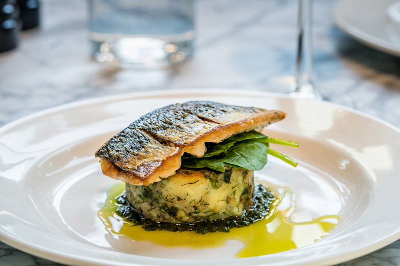 “Always fresh, our fish is caught by ecologically-friendly methods and certifed by the Marine Stewardship Council for sustainable seafood (first small restaurant group outside of London to receive the certification). Organic beef is certifed by the Soil Association and sourced from the award-winning Aberdeen Angus herd in Rhug Estate Organic Farm.